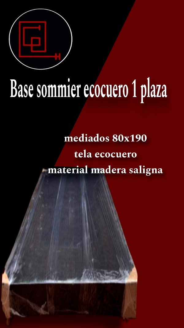 Base sommier ecocuero 80x1.90 estructura y patas madera saligna.