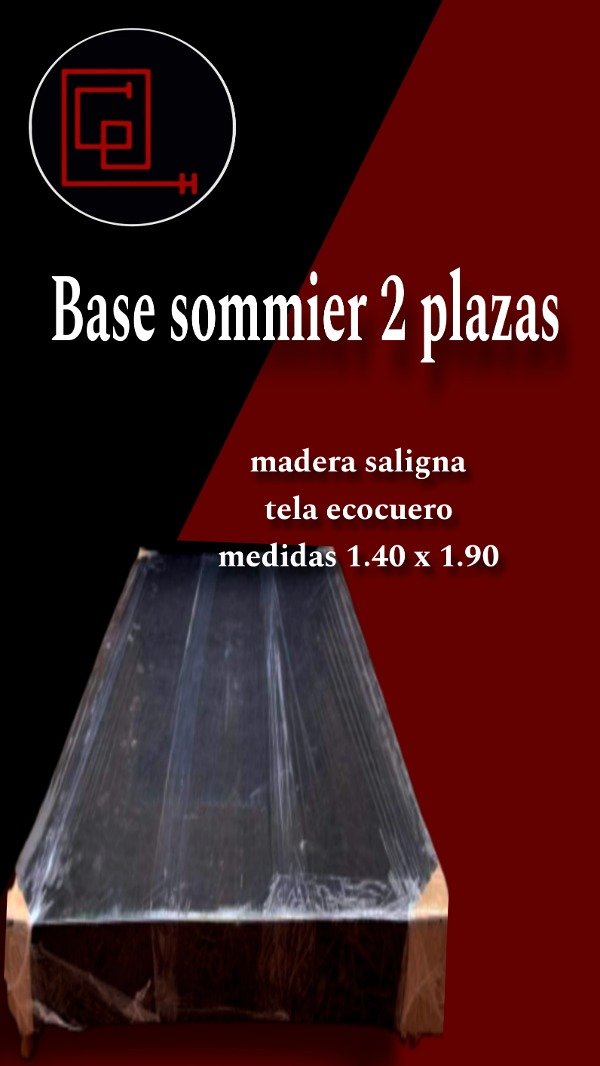 Base sommier ecocuero negro material de estructura y patas madera saligna medidas 1.40x1.90