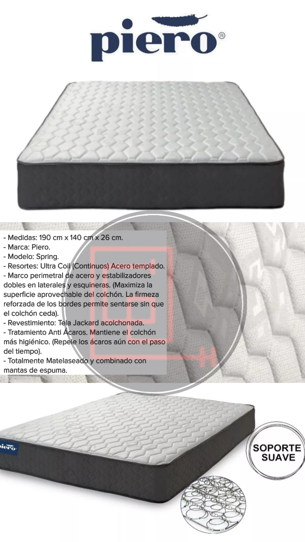 Colchon piero Spring 1.40x1.90x26 alta densidad