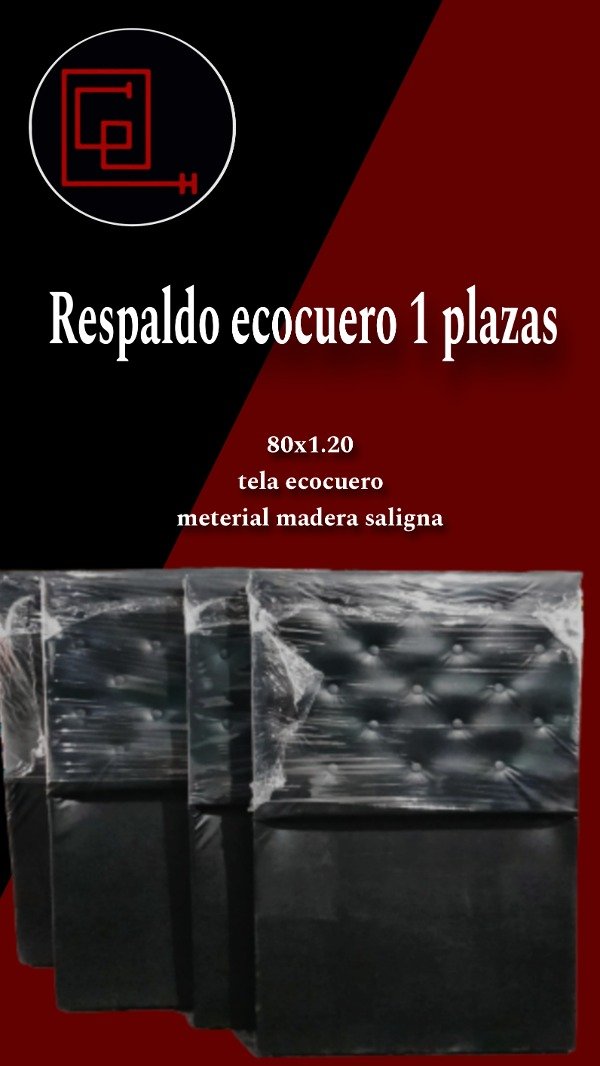 Respaldo ecocuero negro 80x1.20 estructura madera saligna.